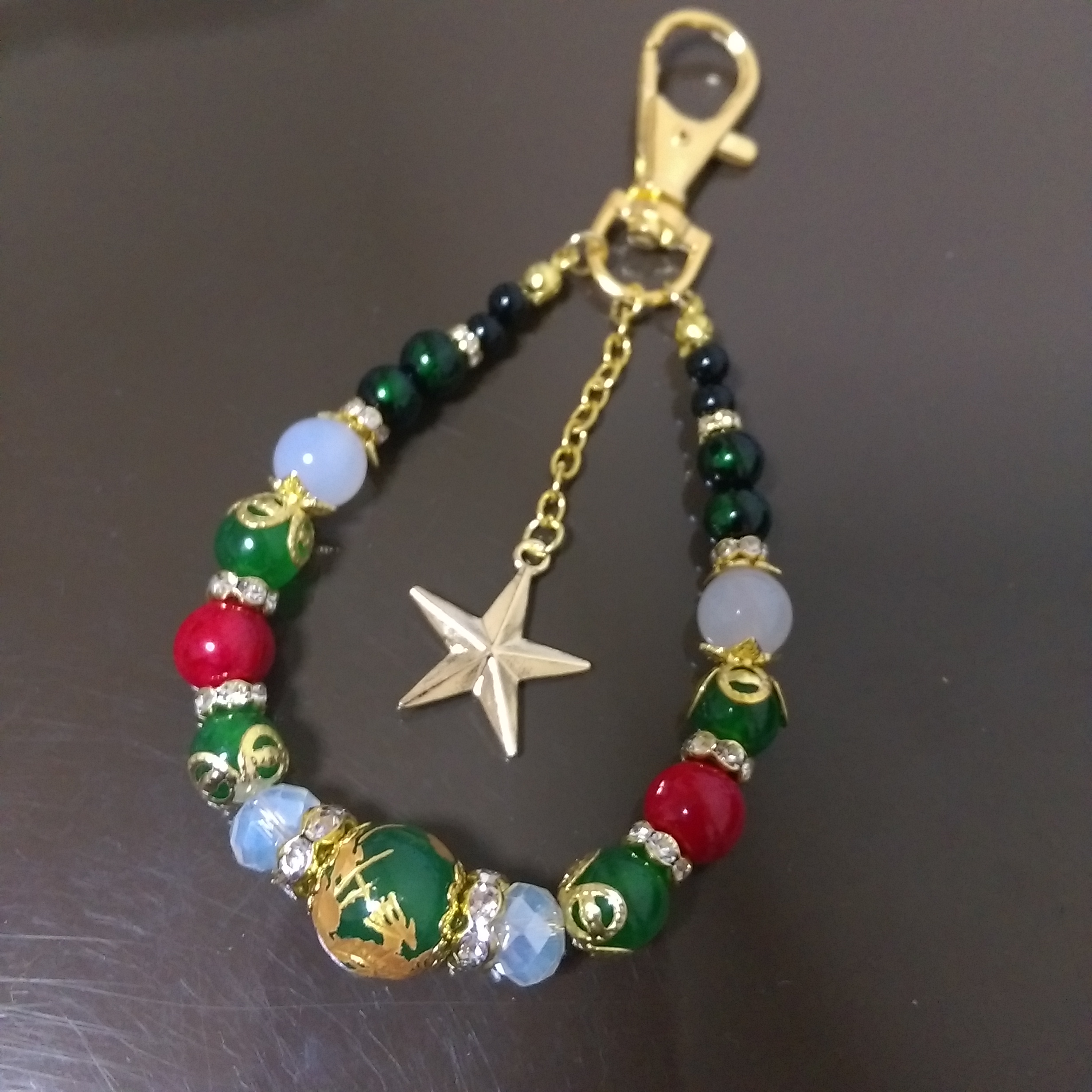 私がパワーストーンブレスレットを作るとすごく派手で日常に使いにくいデザインになってしまって、それにブレスレットだとサイズもあるので、バッグチャームにしてみました。